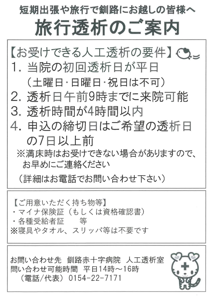 旅行透析のご案内