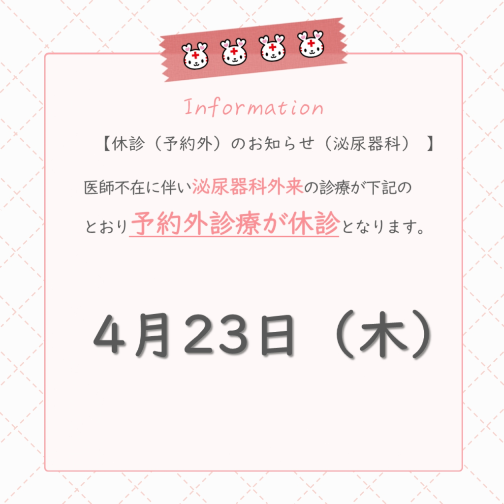 Home > 泌尿器科外来 休診(予約外)のお知らせ