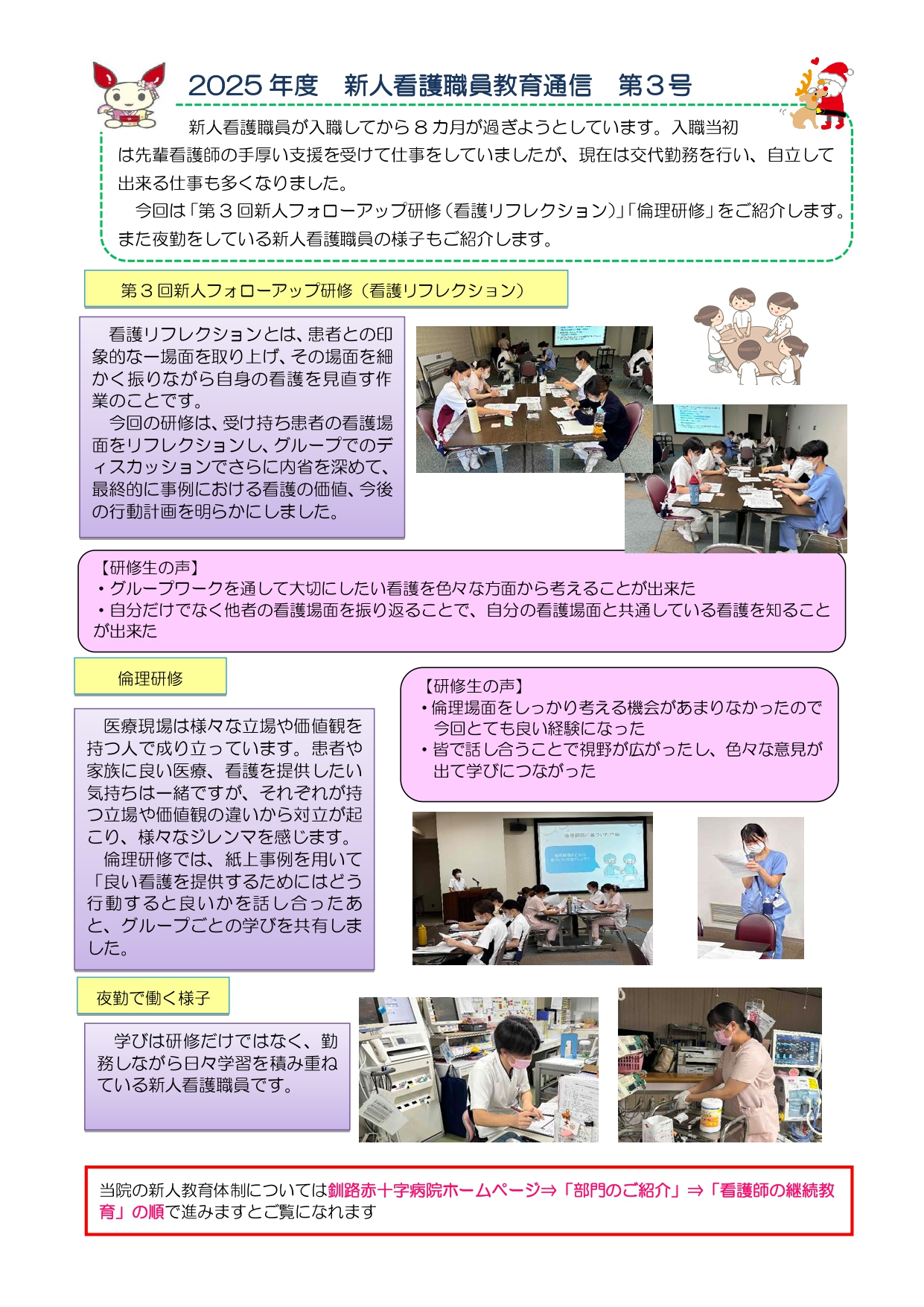 看護部では新人看護職員教育通信を定期的に更新してお届けします。