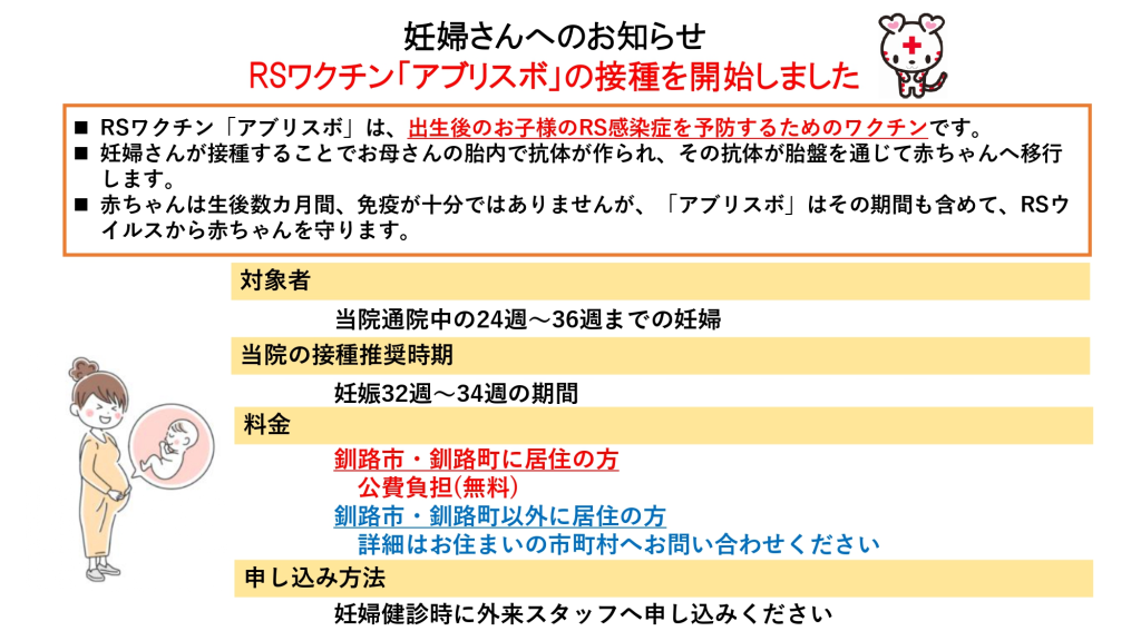RSワクチン「アブリスボ」接種開始のお知らせ(妊婦さんへ)