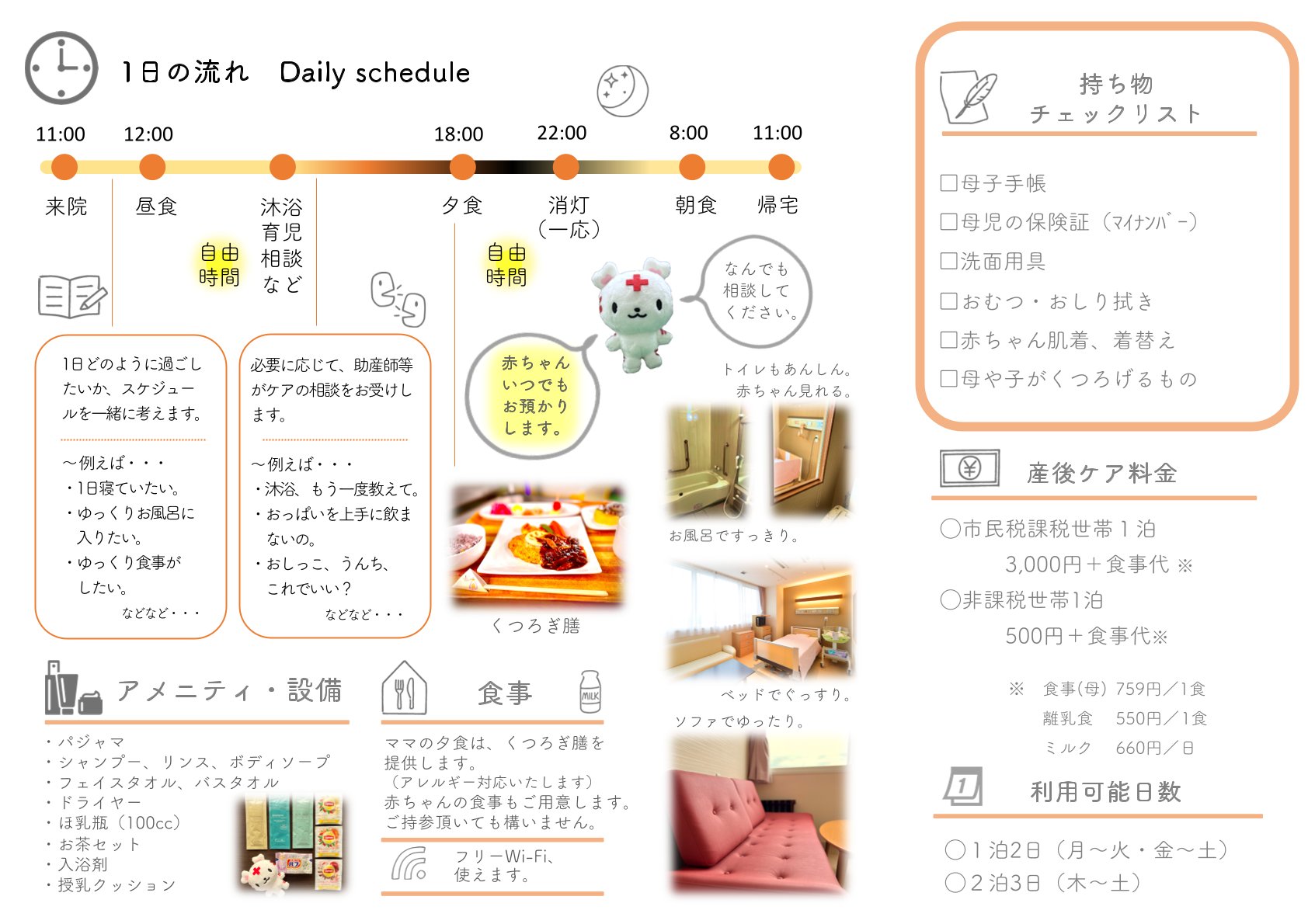 1歳未満の赤ちゃんとママが、宿泊(当院)しながらリラックスしたり、ケアのアドバイスが受けられる釧路市の事業です。詳しくは以下をご覧ください。